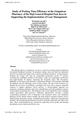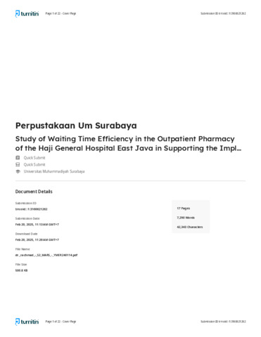 Study of Waiting Time Efficiency in the Outpatient Pharmacy of the Haji General Hospital East Java in Supporting the Implementation of Lean Management.pdf - Published Version
