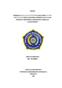 Rahmasari, Amelia (2025) Perbedaan Follicle Oocyte Index pada Pasien In Vitro Fertilisation dengan Kriteria POSEIDON 3 dan 4 yang Mendapat Ministimulasi dibandingkan Stimulasi Gonadotropin. Undergraduate thesis, Universitas Muhammadiyah Surabaya.