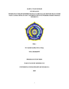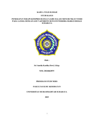 Dewi, Sri Amelia Kartika (2025) Penerapan Terapi Kompres Hangat Jahe dalam Menurunkan Nyeri pada Lansia dengan Gout Arthritis di Panti Werdha Hargo Dedali Surabaya. Professional thesis, Universitas Muhammadiyah Surabaya.