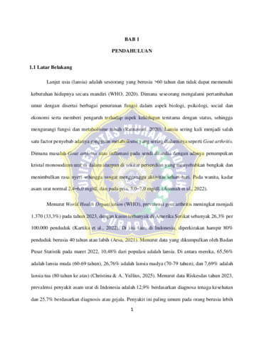 | Uncontrolled Keywords: | Kata kunci: lansia, gout arthritis, nyeri sendi, kompres hangat jahe, terapi non farmakologis |