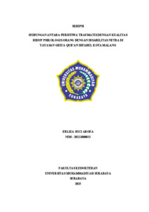 Arofa, Erliza Suci (2025) Hubungan antara Peristiwa Traumatis dengan Kualitas Hidup Psikologis Orang dengan Disabilitas Netra di Yayasan Griya Qur’an Difabel Kota Malang. Undergraduate thesis, Universitas Muhammadiyah Surabaya.