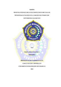 Sasmita, Niken Anggun (2025) Hubungan Pengetahuan dan Kepatuhan Diet dalam Pengendalian Kadar Gula Darah pada Pasien Diabetes Melitus di Puskesmas Kalijudan. Undergraduate thesis, Universitas Muhammadiyah Surabaya.