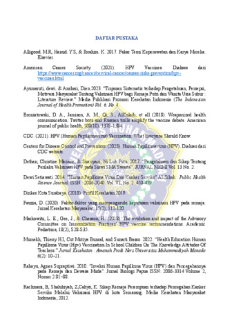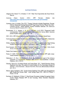 Azzuhroh, Hurin 'In Intan (2024) Faktor-Faktor yang Berhubungan dengan Pencegahan Human Papilloma Virus: Vaksinasi HPV dengan Pendekatan Self-Care Remaja di SMP Mujahidin Surabaya. Undergraduate thesis, Universitas Muhammadiyah Surabaya.