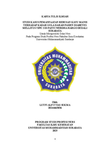 Sukma, Lutfi Alfi Tyas (2025) Studi Kasus Pemanfaatan Rebusan Kayu Manis terhadap Kadar Gula Darah Pasien Diabetes Melitus Tipe 2 di Panti Werdha Hargo Dedali Surabaya. Professional thesis, Universitas Muhammadiyah Surabaya.