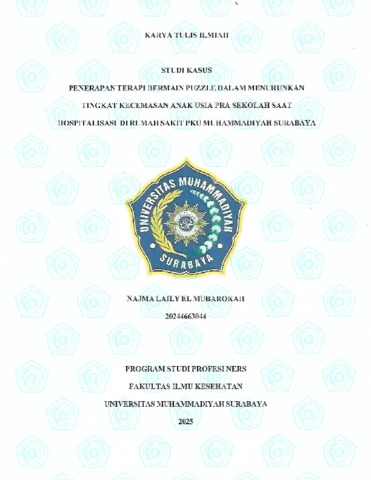 El Mubarokah, Najma Laily (2025) Penerapan Terapi Bermain Puzzle dalam Menurunkan Tingkat Kecemasan Anak Usia Prasekolah Saat Hospitalisasi di Rumah Sakit PKU Muhammadiyah Surabaya. Professional thesis, Universitas Muhammadiyah Surabaya.