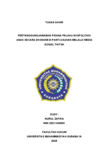 Zafika, Nurul (2025) Pertanggungjawaban pidana pelaku eksploitasi anak secara ekonomi di panti asuhan melalui media sosial TikTok. Undergraduate thesis, Universitas Muhammadiyah Surabaya.
