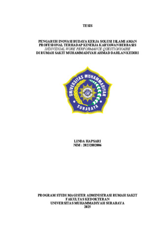 Hapsari, Linda (2025) Pengaruh Inovasi Budaya Kerja Solusi Islami Aman Profesional terhadap Kinerja Karyawan Berbasis Individual Work Performance Questionnaire di Rumah Sakit Muhammadiyah Ahmad Dahlan Kediri. Masters thesis, Universitas Muhammadiyah Surabaya.