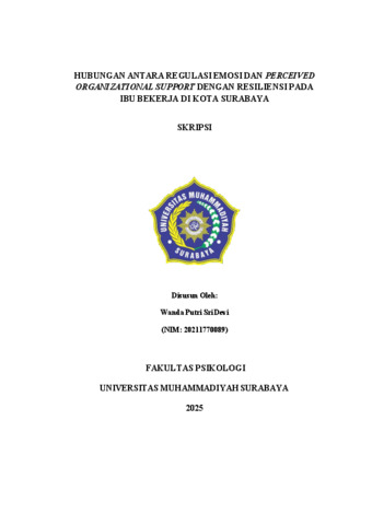 Devi, Wanda Putri Sri (2025) Hubungan antara Regulasi Emosi dan Perceived Organizational Support dengan Resiliensi pada Ibu Bekerja di Kota Surabaya. Undergraduate thesis, Universitas Muhammadiyah Surabaya.