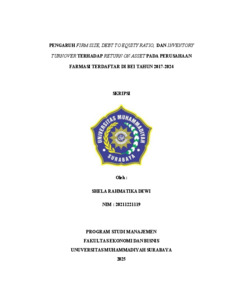 Dewi, Shela Rahmatika (2025) Pengaruh Firm Size, Debt to Equity Ratio, dan Inventory Turnover terhadap Return on Asset pada Perusahaan Farmasi Terdaftar di BEI Tahun 2017–2024. Undergraduate thesis, Universitas Muhammadiyah Surabaya.
