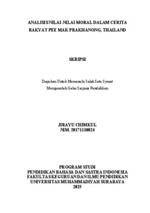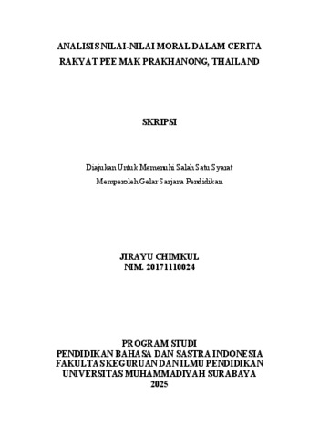 Cimkul, Jirayu (2024) Analisis Nilai-Nilai Moral dalam Cerita Rakyat Pee Mak Phrakhanong, Thailand. Undergraduate thesis, Universitas Muhammadiyah Surabaya.