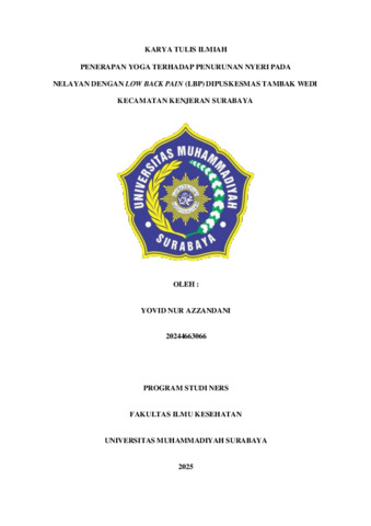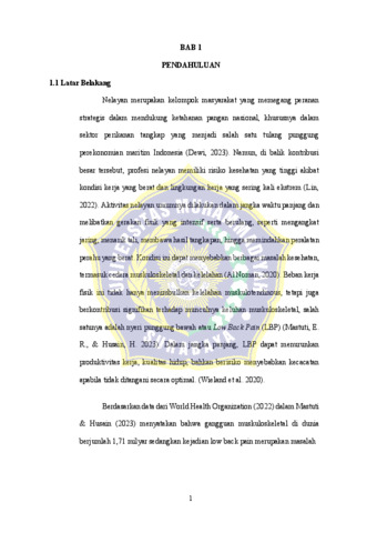 nyeri tinggi menurun menjadi 13.3% (n=2), sedang 26.7% (n=4), dan ringan meningkat menjadi 60.0% (n=9), menunjukkan perbaikan fungsi dan penurunan persepsi nyeri. Senam yoga yang diberikan secara terstruktur efektif menurunkan intensitas nyeri LBP pada nelayan; direkomendasikan sebagai intervensi non- farmakologis yang dapat diintegrasikan dalam program puskesmas.