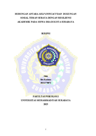 Karisma, Sita (2025) Hubungan antara Self-Efficacy dan Dukungan Sosial Teman Sebaya dengan Resiliensi Akademik pada Siswa SMA di Kota Surabaya. Undergraduate thesis, Universitas Muhammadiyah Surabaya.