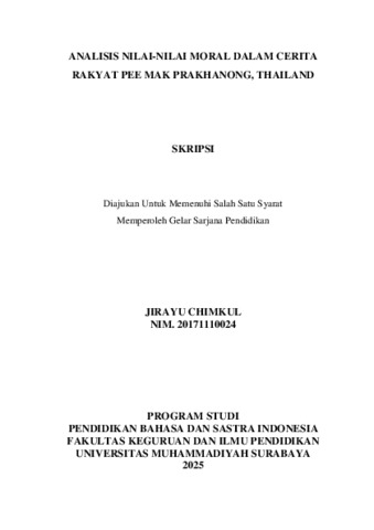 Chimkul, Jirayu (2024) Analisis Nilai-Nilai Moral dalam Cerita Rakyat Pee Mak Prakhanong, Thailand. Undergraduate thesis, Universitas Muhammadiyah Surabaya.