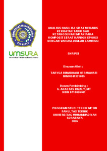 Hermawati, Tarysa Rimadhani (2026) Analisis Hasil Uji Sifat Mekanis Kekuatan Tarik dan Ketangguhan Impak pada Komposit Serat Karbon Epoksi dengan Variasi Jumlah Laminasi. Undergraduate thesis, Universitas Muhammadiyah Surabaya.