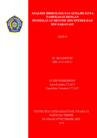 M. Sholehudin, M. Sholehudin (2025) Analisis Hidrologi DAS Semajid Kota Pamekasan dengan Pendekatan Metode HSS Snyder dan HSS Nakayasu. Undergraduate thesis, Universitas Muhammadiyah Surabaya.