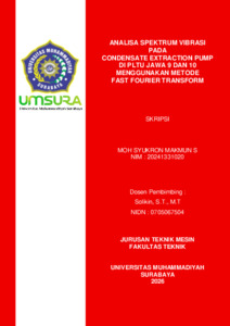 Makmun S, Moh Syukron (2026) Analisis Spektrum Vibrasi pada Condensate Extraction Pump di PLTU Jawa 9 dan 10 Menggunakan Metode Fast Fourier Transform. Undergraduate thesis, Universitas Muhammadiyah Surabaya.