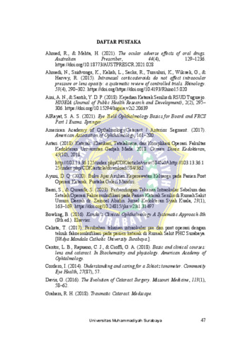 Az’zahra, Gusti Ratu (2025) Perbedaan Tekanan Intraokular Sebelum dan Setelah Operasi Fakoemulsifikasi pada Pasien Katarak Senilis di RSUD Dr. Wahidin Sudirohusodo Mojokerto. Undergraduate thesis, Universitas Muhammadiyah Surabaya.
