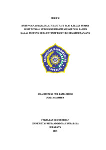 Ramadhani, Khairunnisa Nur (2025) Hubungan Antara Nilai Heart Rate Saat Keluar Rumah Sakit dengan Kejadian Rehospitalisasi pada Pasien Gagal Jantung di Rawat Inap RS Siti Khodijah Sepanjang. Undergraduate thesis, Universitas Muhammadiyah Surabaya.