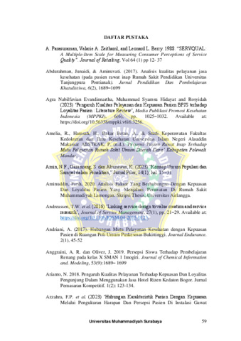 | Uncontrolled Keywords: | Kualitas pelayanan, Kepuasan pasien, Pasien rawat inap, Service quality, Patient satisfaction, Inpatients |