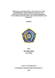 Amrozi, Nur Azlina (2025) Hubungan antara Digital Self-Efficacy dan Konformitas Teman Sebaya dengan Niat Menggunakan ChatGPT untuk Mengerjakan Tugas Sekolah pada Siswa SMA Muhammadiyah 10 Surabaya. Undergraduate thesis, Universitas Muhammadiyah Surabaya.