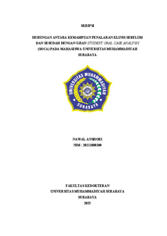 Anshori, Nawal (2025) Hubungan Antara Kemampuan Penalaran Klinis Sebelum dan Sesudah dengan Ujian Student Oral Case Analysis (SOCA) Pada Mahasiswa Universitas Muhammadiyah Surabaya. Undergraduate thesis, Universitas Muhammadiyah Surabaya.