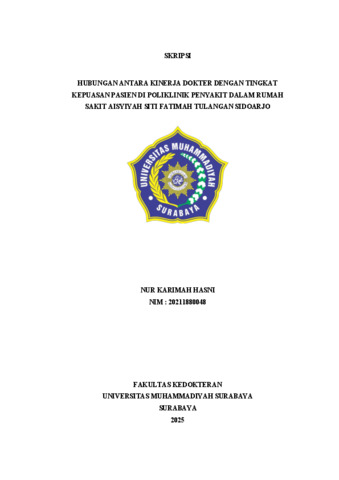 Hasni, Nur Karimah (2025) Hubungan antara Kinerja Dokter dengan Tingkat Kepuasan Pasien di Poliklinik Penyakit Dalam Rumah Sakit Aisyiyah Tulangan Sidoarjo. Undergraduate thesis, Universitas Muhammadiyah Surabaya.