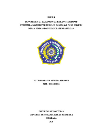 Firdaus, Putri Pralisya Kusuma (2025) Pengaruh Gizi Baik dan Gizi Kurang Terhadap Perkembangan Motorik Halus dan Kasar Pada Anak di Desa Asemkandang Kabupaten Pasuruan. Undergraduate thesis, Universitas Muhammadiyah Surabaya.