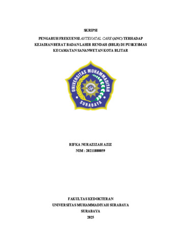 Aziz, Rifka Nurazizah (2025) Pengaruh Frekuensi Antenatal Care (ANC) terhadap Kejadian Berat Badan Lahir Rendah (BBLR) di Puskesmas Kecamatan Sananwetan Kota Blitar. Undergraduate thesis, Universitas Muhammadiyah Surabaya.