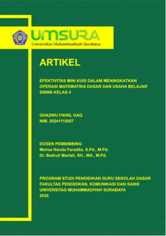 Haq, Ghazwu Fikril (2026) Efektivitas Mini Kuis dalam Meningkatkan Operasi Matematika Dasar dan Usaha Belajar Siswa Kelas 4. Undergraduate thesis, Universitas Muhammadiyah Surabaya.