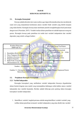 64,8% (Adjusted R2=0,648). Kualitas pelayanan berpengaruh signifikan terhadap kepuasan orang tua pasien rawat inap anak, dengan keandalan sebagai faktor paling dorninan. Manajernen rurnah sakit perlu rnernprioritaskan konsistensi pelayanan, ketepatan waktu, dan akurasi dalarn setiap aspek perawatan.