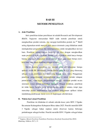 Penelitian ini bertujuan untuk , (1) mendeskripsikan kondisi pembiasaan shalat siswa sebelum dikembangkan aplikasi MOSLIM, (2) mengembangkan aplikasi MOSLIM sebagai media monitoring ibadah shalat, serta (3) menganalisis efektivitas penggunaannya dalam meningkatkan pembiasaan shalat siswa di SD Negeri 3 Ngraho Kecamatan Kedungtuban Kabupaten Blora.