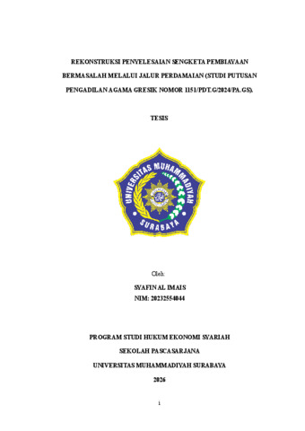 Al Imais, Syafin (2026) Rekonstruksi Penyelesaian Sengketa Pembiayaan Bermasalah Melalui Jalur Perdamaian (Studi Putusan Pengadilan Agama Gresik Nomor 1151/Pdt.G/2024/PA.Gs). Masters thesis, Universitas Muhammadiyah Surakarta.