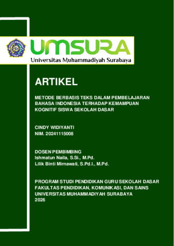 | Uncontrolled Keywords: | Pembelajaran Bahasa Indonesia, Metode Berbasis Teks, Kognitif |