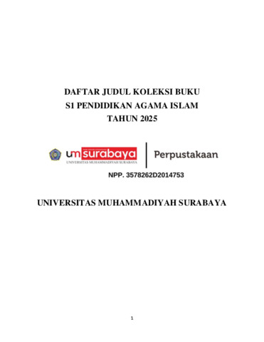 Perpustakaan, UMSurabaya (2025) Daftar Koleksi Program Studi Pendidikan Agama Islam. Biro Perpustakaan UMSurabaya. (Unpublished)