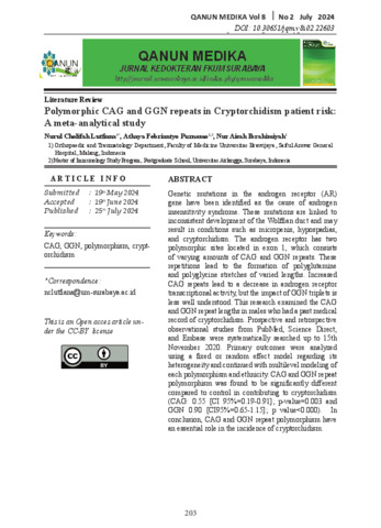 Dokumen - Polymorphic CAG and GGN repeats in Cryptorchidism patient risk A meta-analytical study.pdf - Published Version